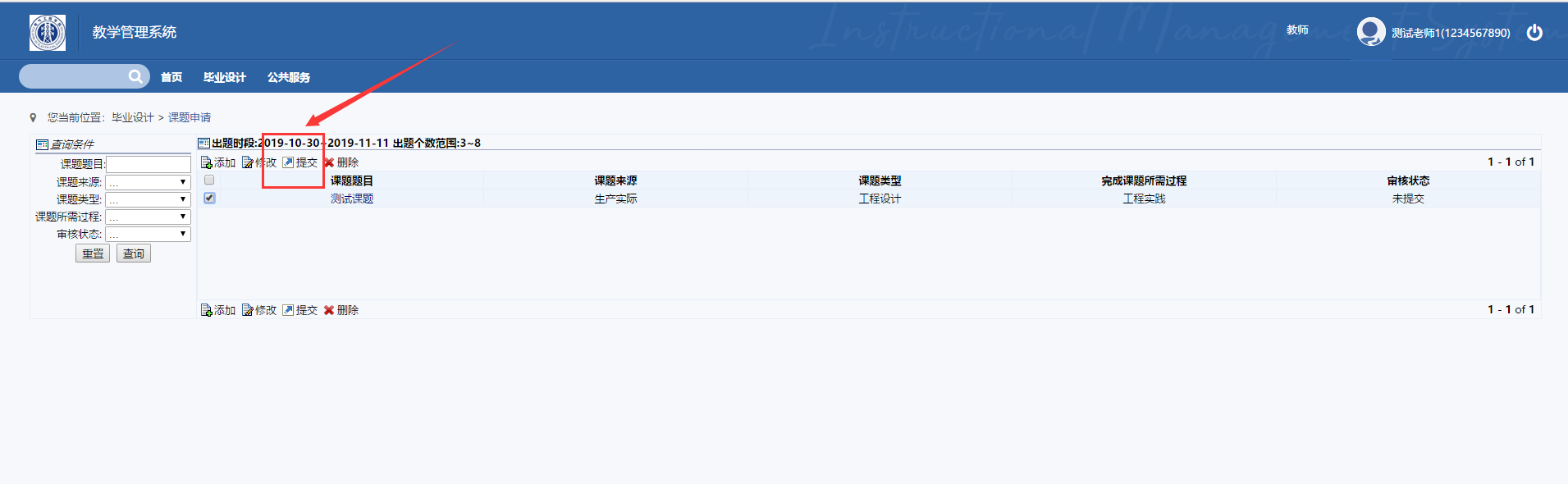 3、11月13日新进老师(第一次带毕设的老师)登陆系统出题:要求出题数为3~4个。
