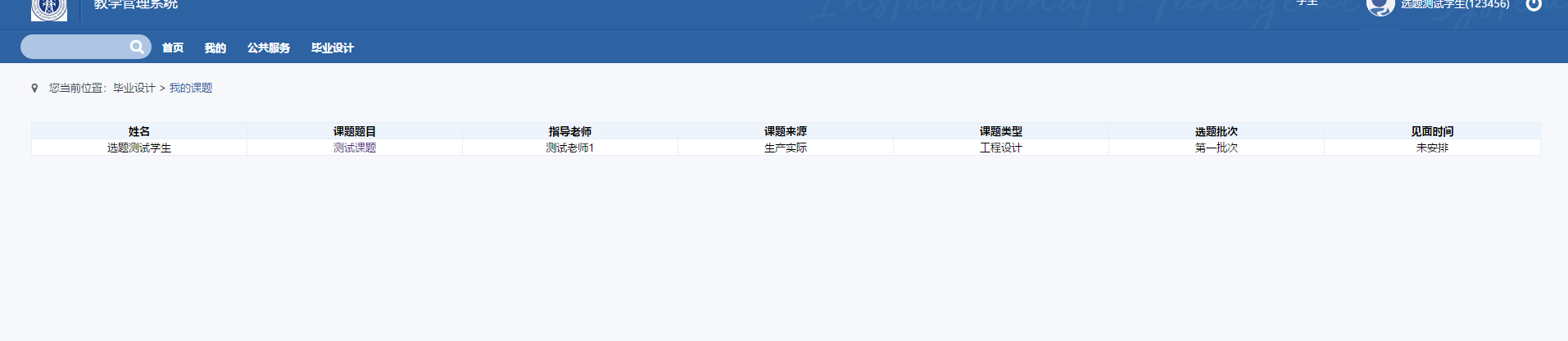 学生在规定的时间范围内选题,选择课题后,由该题目的出题老师审核确认。